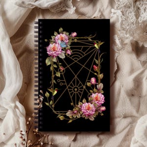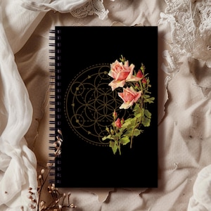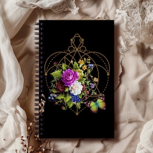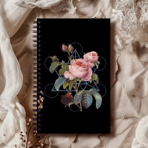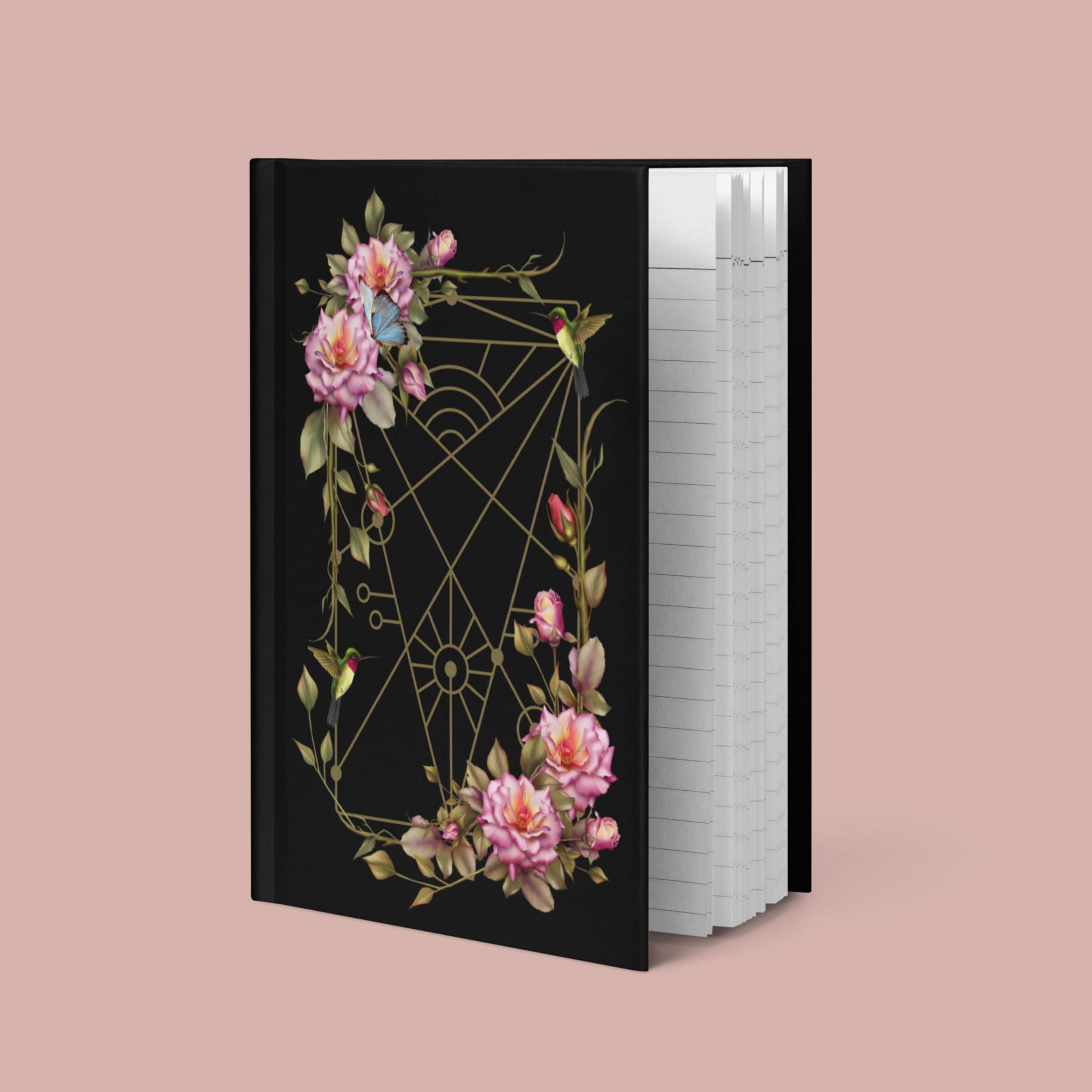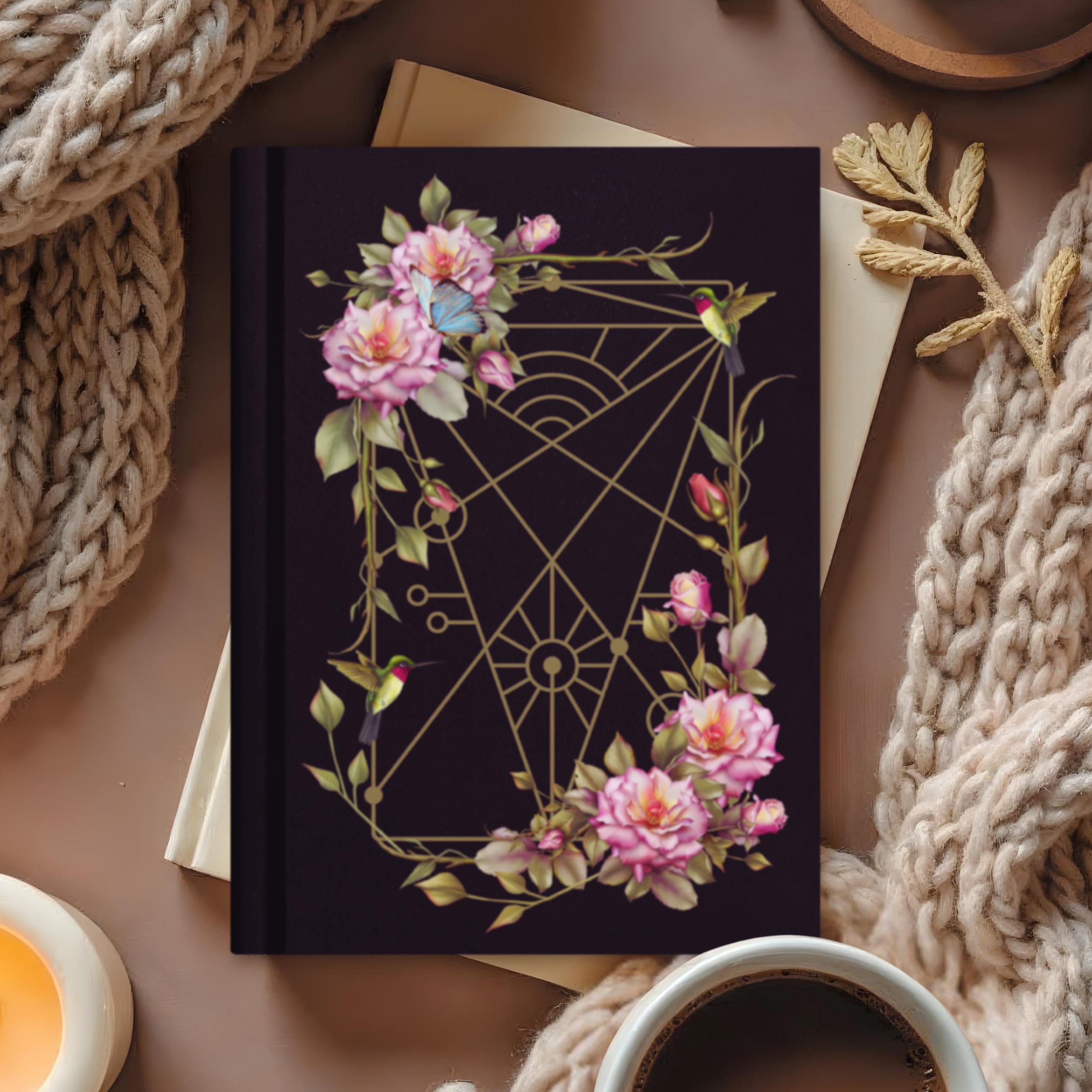 This elegant hardcover notebook brings together a beautiful image of vintage botanicals and humming bird with a sacred geometry telemetry map design on a velvety black cover, creating a dramatic, intelligent aesthetic for everyday use. Sized at 5.75"x8" (14.6 cm × 20.3 cm), it’s easy to carry in your bag or backpack, whether you’re journaling at home, in a café, or on campus.